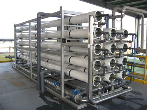 设备简介:78T/H RO反渗透纯水系统。 行业用途:精密电子行业清洗用水 产水水质:小于10μs/cm 设备流程:原水→多介质过滤器→活性炭过滤器→精密过滤器→中间水箱→反渗透纯水设备→ 纯水储水箱→纯水泵→后置保安过滤器→用水点